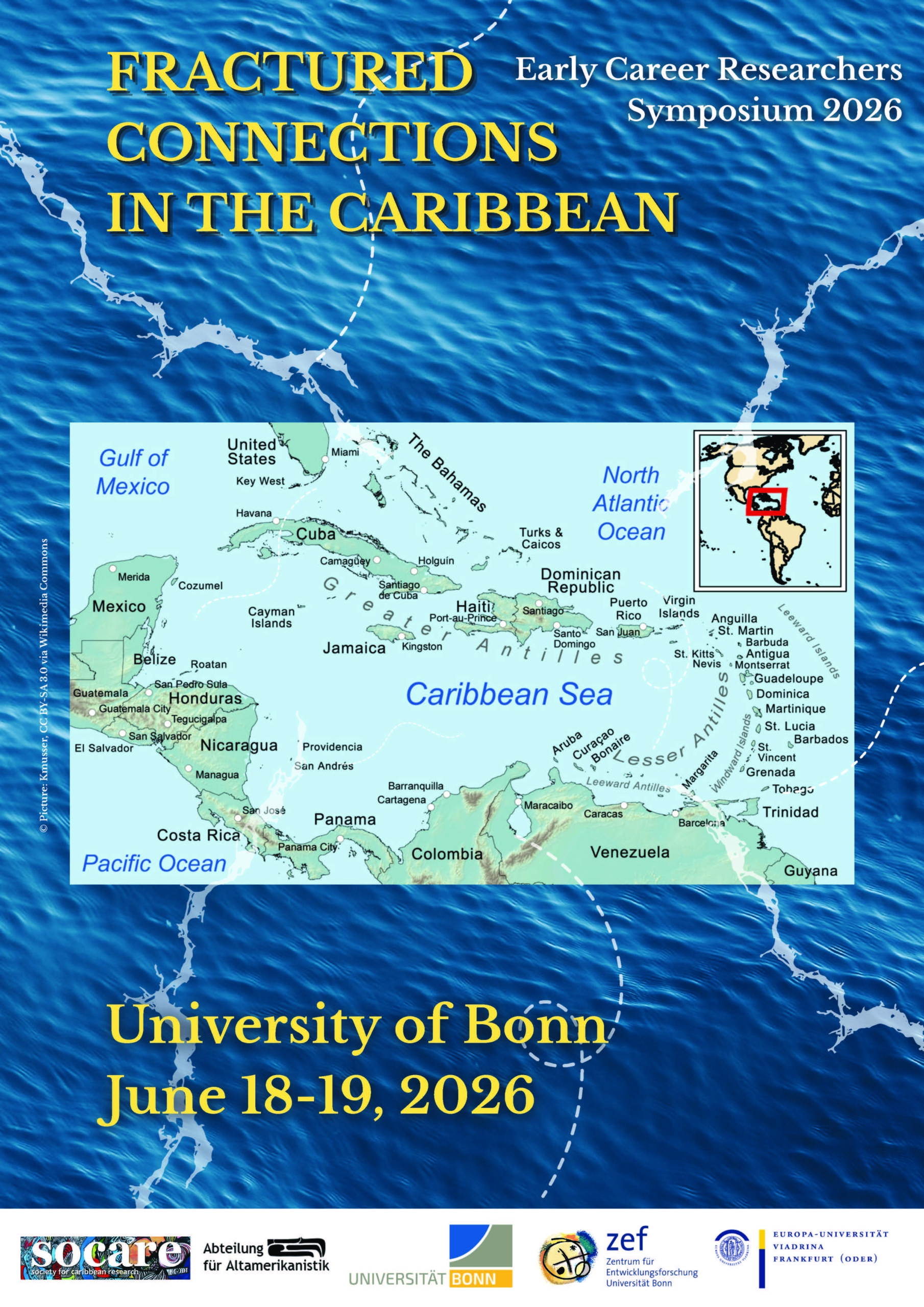 Considering the Caribbean’s multifaceted history and its ongoing tensions and complexities, the planned symposium focuses on the exploration and critical reflection of three modes of relationality: connection, bond, and fracture. These notions serve to form a framework to discuss historical and current events, processes, and phenomena in the Caribbean (both insular and continental). One point of interest will be to analyze how these three elements are conceptualized and approached by researchers, including categorization, identification of nodal points, and methodological proposals. Additionally, we seek to examine how connection, bond, and fracture have shaped the region in various dimensions, such as the production of perceptions and narratives, internal and transoceanic commercial, social, and political dynamics, the configuration of families, and the formation of specific cultural landscapes.